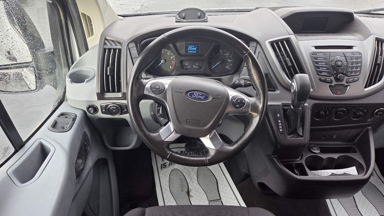 Hop into this sleek White 2016 Ford Transit and get ready for a fun ride! With its powerful Rear-Wheel Drive and solid suspension, this car can handle any adventure you throw its way. The 3.73 Axle Ratio and 2900# Maximum Payload make it perfect for carrying all your gear, while the 25 Gal. Fuel Tank ensures you can keep going for miles.