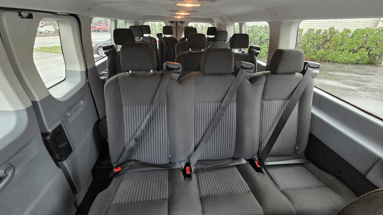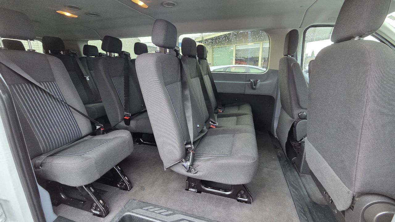 Step inside to find a spacious interior with comfortable seating and plenty of storage options. From the Manual Tilt/Telescoping Steering Column to the Removable Bench Front Facing 4th Row Seat, this Transit is designed for convenience. Plus, with features like the HVAC system, rear cupholders, and multiple power outlets, you'll feel right at home on the road.